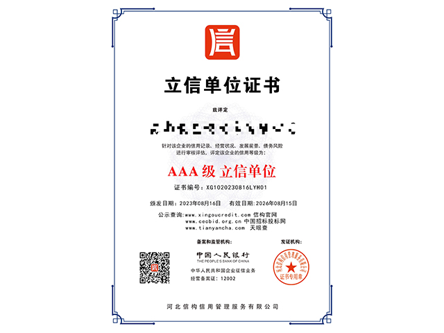 AAA企業(yè)信用等級認(rèn)證服務(wù)經(jīng)驗17年